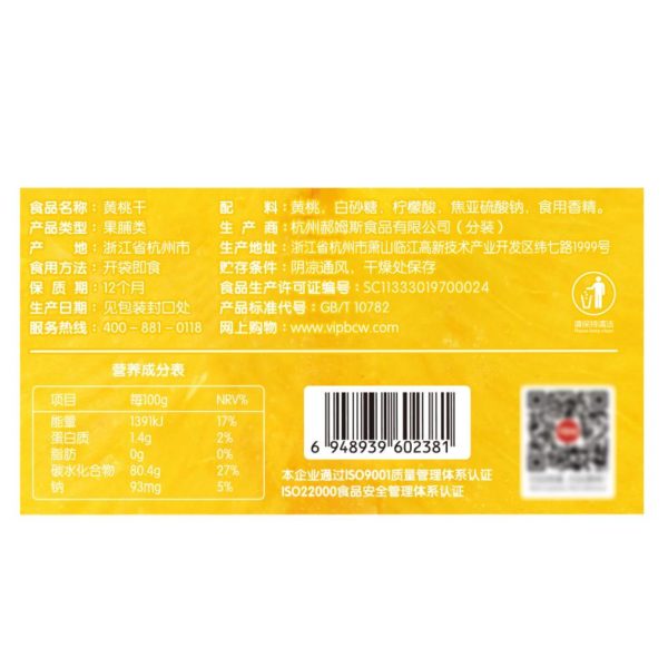- 系列: 黄桃干 100g (果脯类)